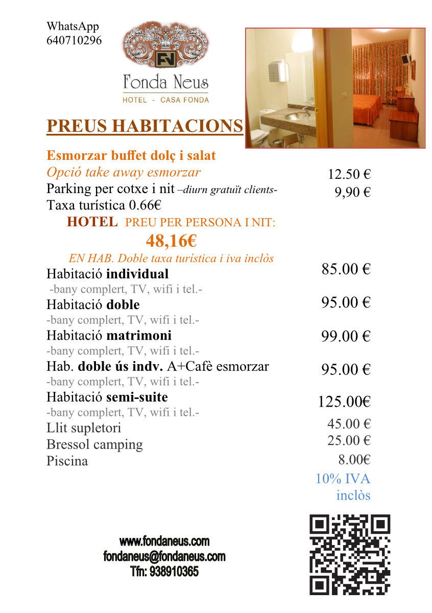 Cadasquna de les 10 habitacions de l'hotel Fonda Neus tenen una sèriede detalls i serveis que creen una atmosfera de confort.Les habitacions es distribueixen en: